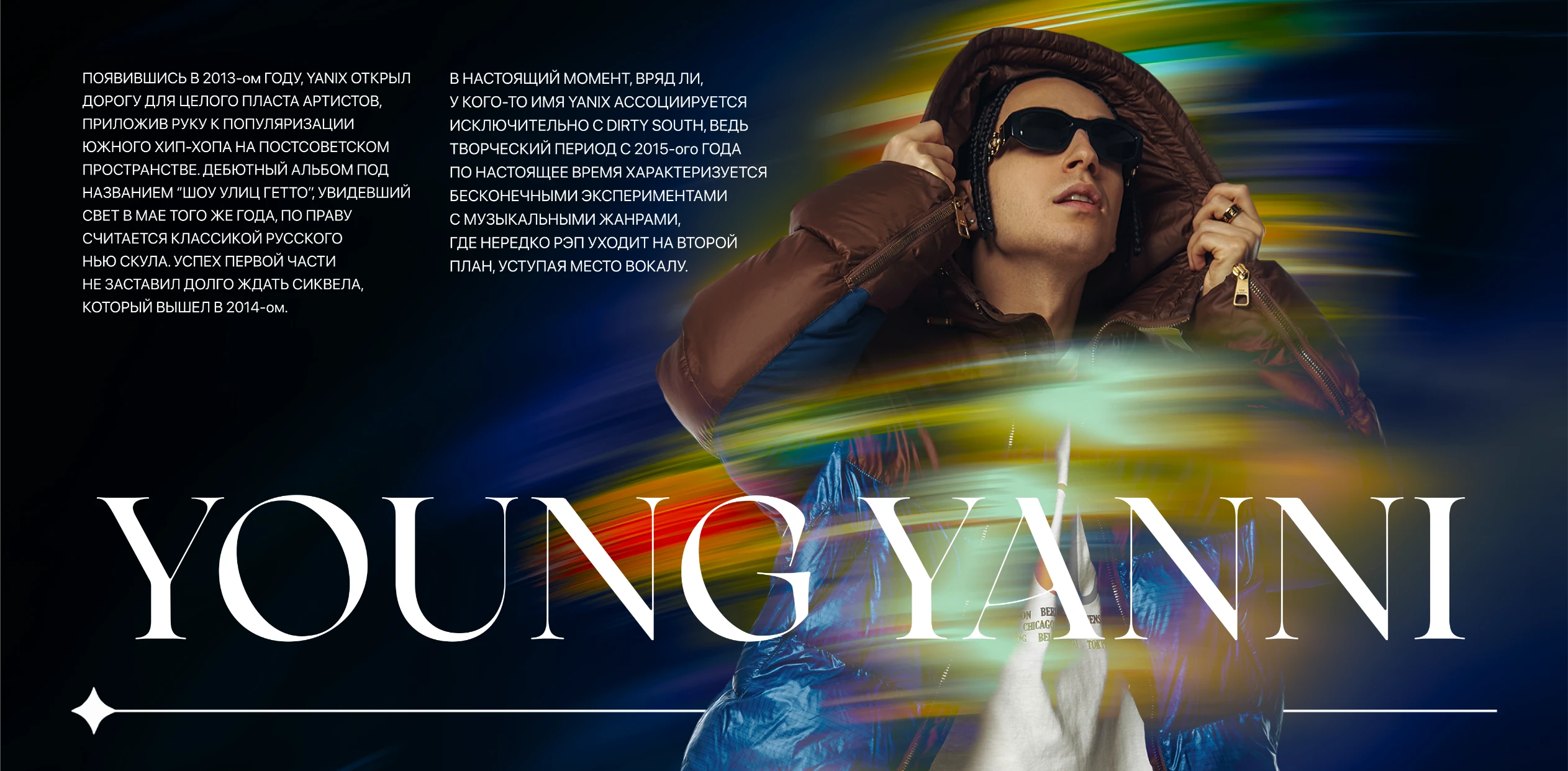 ПОЯВИВШИСЬ В 2013-ом ГОДУ, YANIX ОТКРЫЛ ДОРОГУ ДЛЯ ЦЕЛОГО ПЛАСТА АРТИСТОВ, ПРИЛОЖИВ РУКУ К ПОПУЛЯРИЗАЦИИ ЖАНРА ЮЖНОГО ХИП-ХОПА НА ПОСТСОВЕТСКОМ ПРОСТРАНСТВЕ. ДЕБЮТНЫЙ АЛЬБОМ ПОД НАЗВАНИЕМ ‘’ШОУ УЛИЦ ГЕТТО’’, УВИДЕВШИЙ СВЕТ В МАЕ ТОГО ЖЕ ГОДА, ПО ПРАВУ СЧИТАЕТСЯ КЛАССИКОЙ РУССКОГО НЬЮ СКУЛА. УСПЕХ ПЕРВОЙ ЧАСТИ НЕ ЗАСТАВИЛ ДОЛГО ЖДАТЬ СИКВЕЛА, КОТОРЫЙ ВЫШЕЛ В 2014-ом.
